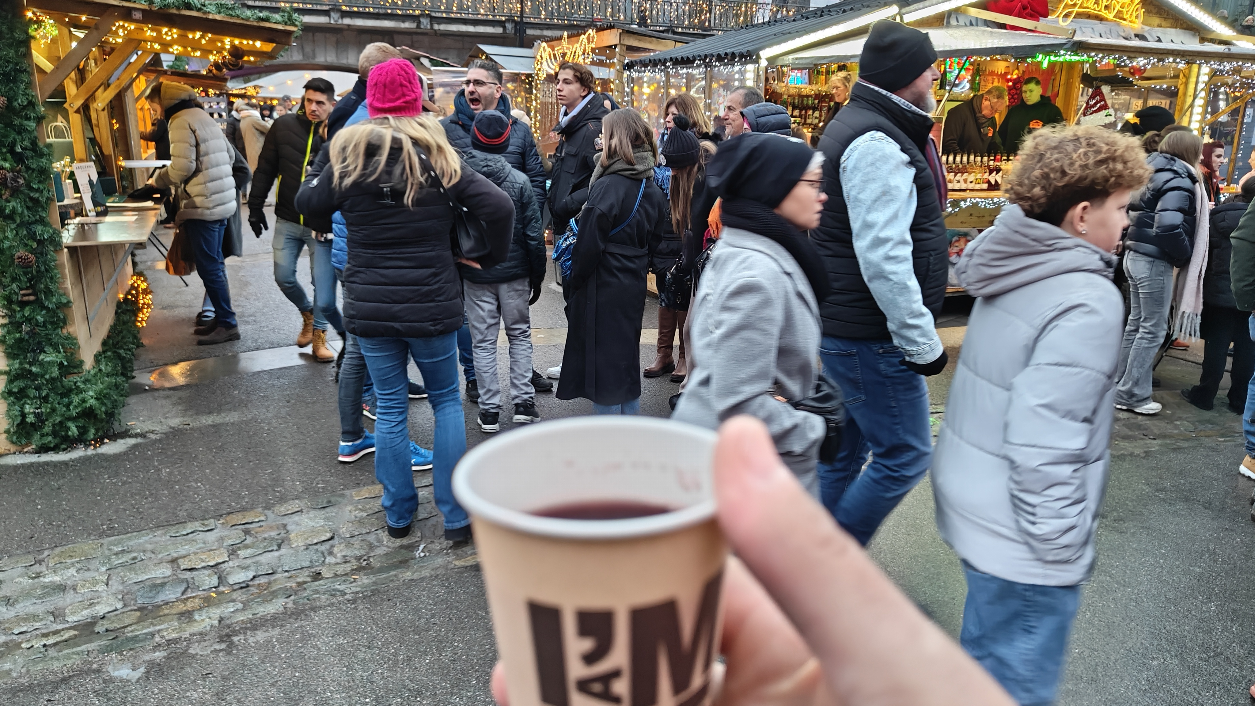 Nous flânons au gré des délicieuses odeurs de vin chaud, de gaufres croustillantes, et de chouchous sucrés.