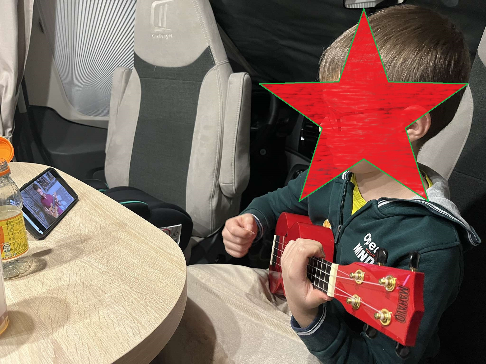 La soirée dans le camping-car s'annonce musicale ! Accord des notes et concert de ukulélé, accompagné d'un tuto sur YouTube. Heureusement pour nos voisins, les autres camping-caristes étaient suffisamment éloignés.